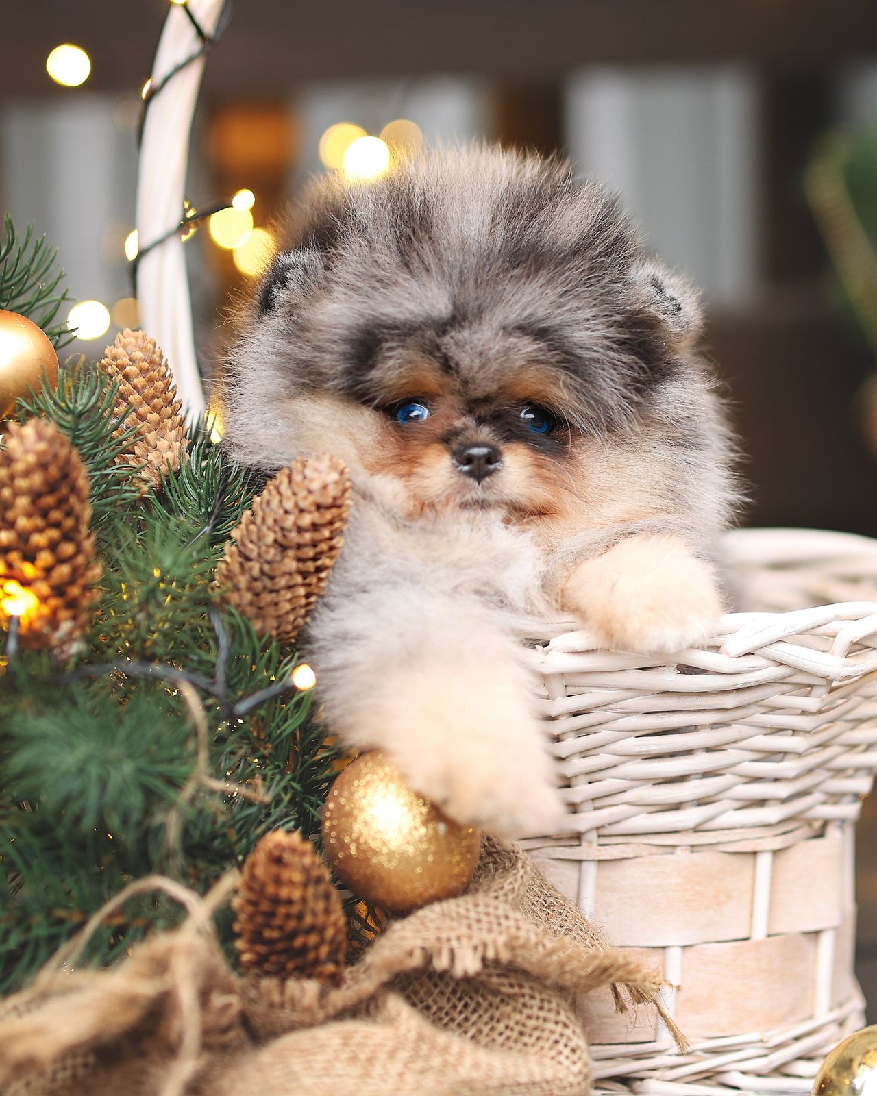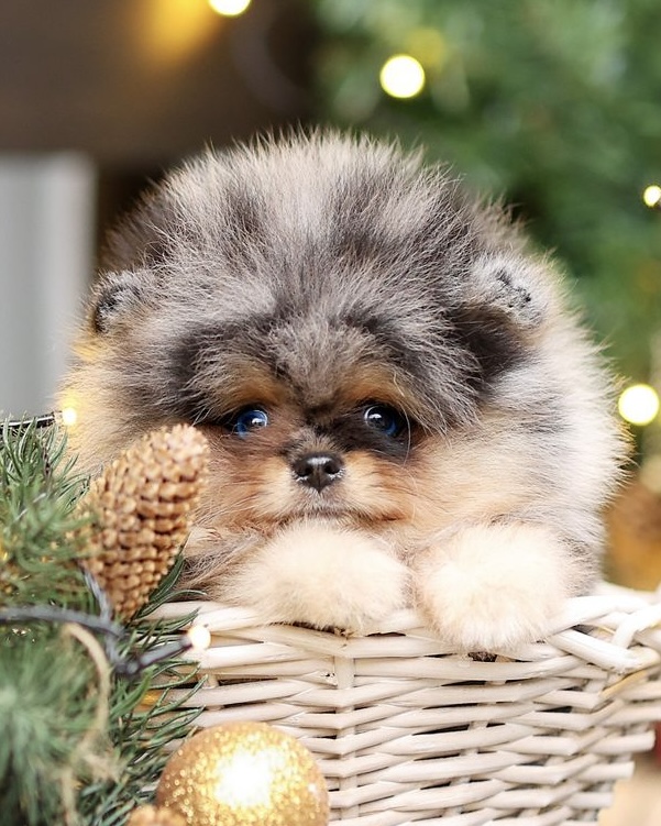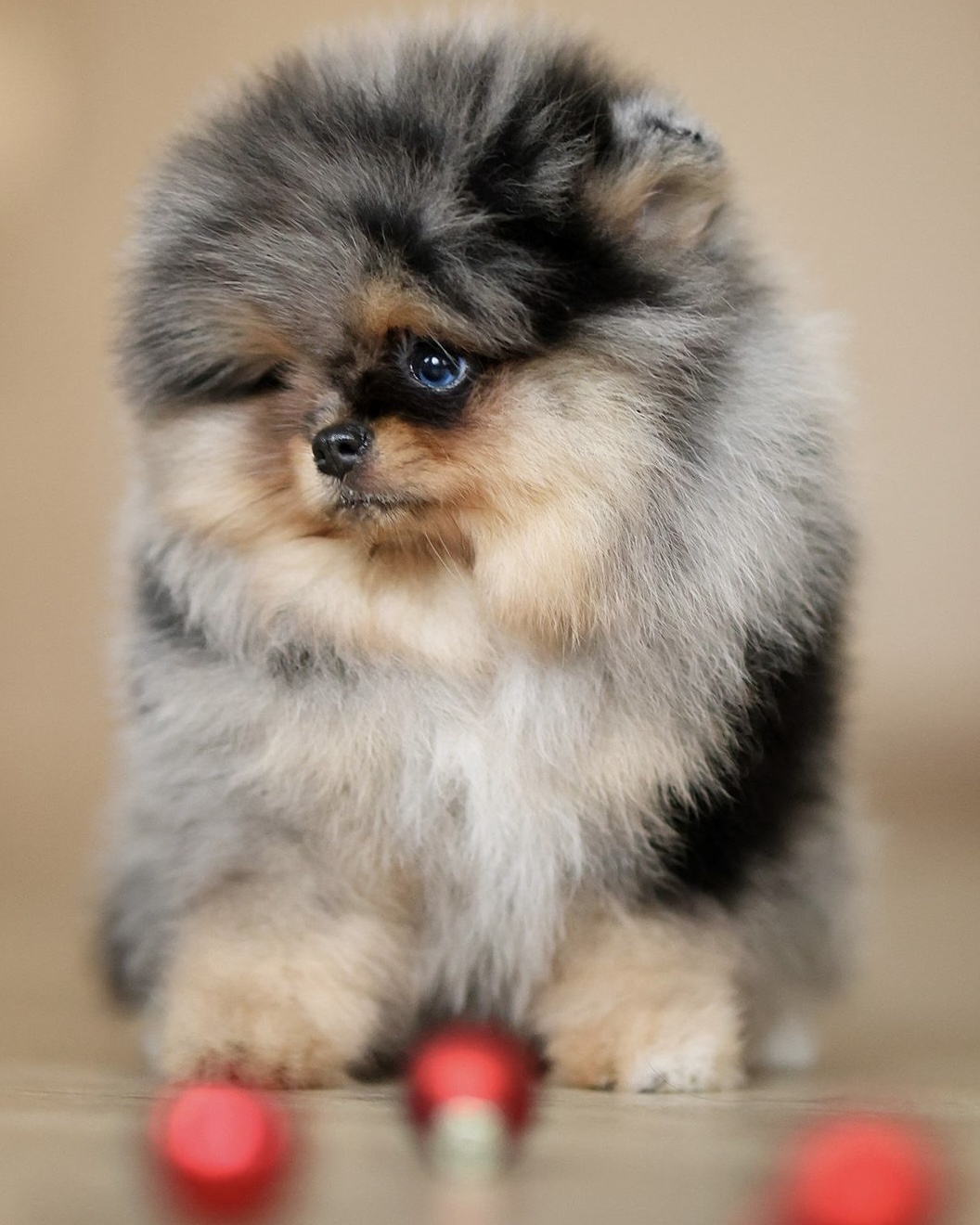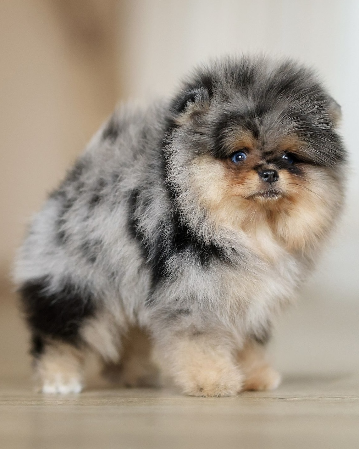 This adorable female Pomeranian puppy is a true little treasure. At just two months old, she already shows an exceptional coat quality — dense, fluffy, plush, and beautifully structured, with a rich texture that promises stunning development as she grows. Her rare marble (merle) coloring makes her especially unique, complemented by striking blue-gray eyes that immediately capture attention. This combination of coat and eye color is uncommon and highly admired among true breed enthusiasts. She has a lively, curious personality — playful, confident, and full of charm — while remaining gentle and affectionate. Raised with care and attention, she demonstrates excellent potential to become a devoted companion and a bright presence in her future home. This is a rare opportunity to welcome a truly special puppy and build a meaningful bond from the very beginning.